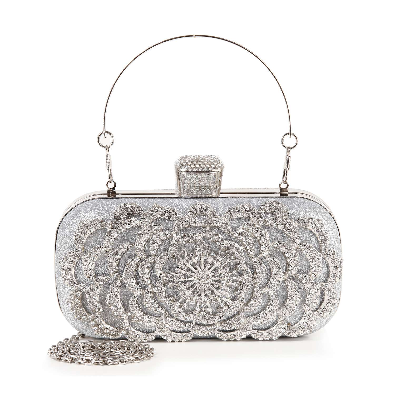 Mesmerizing stones in a retro floral pattern shine across an evening bag that is finished with a metal handle.  This is what you wear when you want to be noticed!
