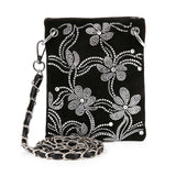 A floral rhinestone design is stunning on this petite crossbody.  But do not let the little size fool you, this bag is full on fun!